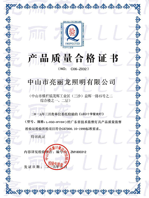 亮麗龍-LED+字星光燈質量合格證書